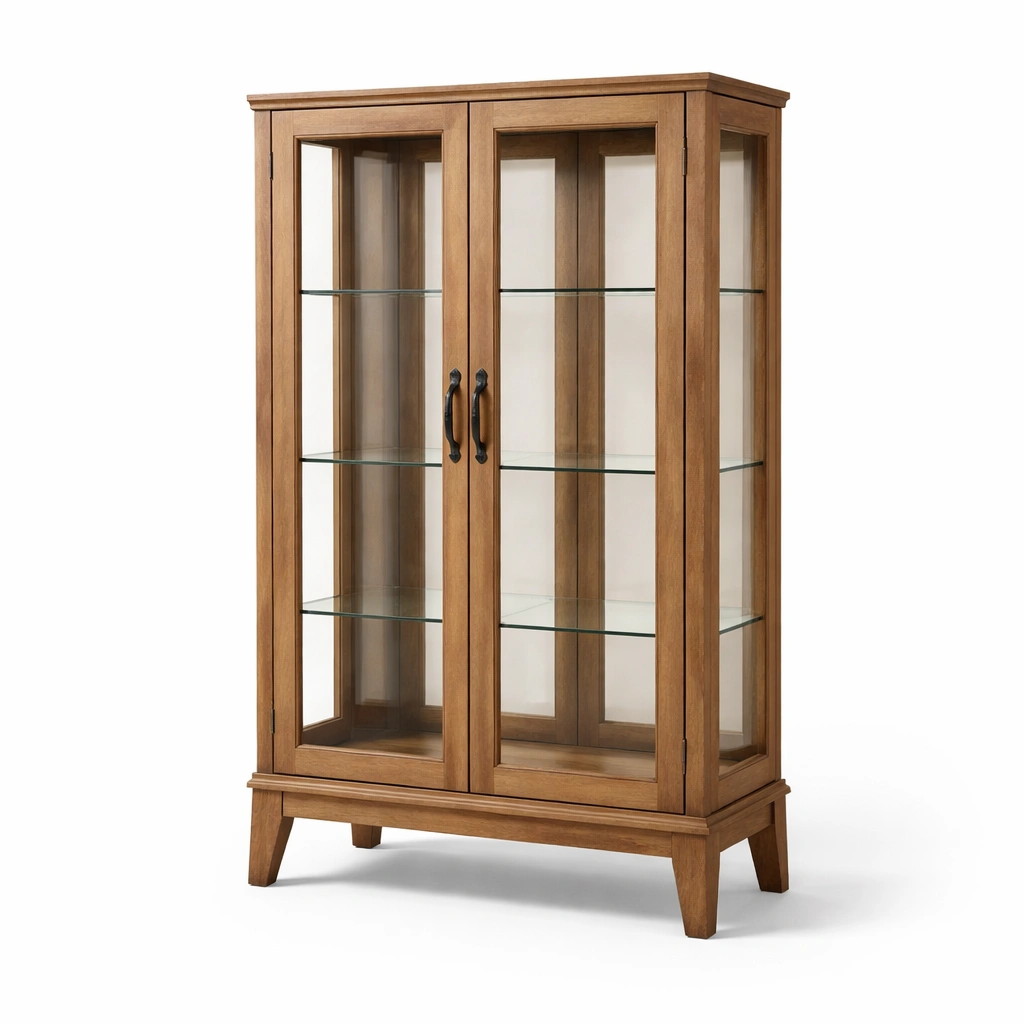 Vitrine Holz mit Regalen aus gehärtetem Glas