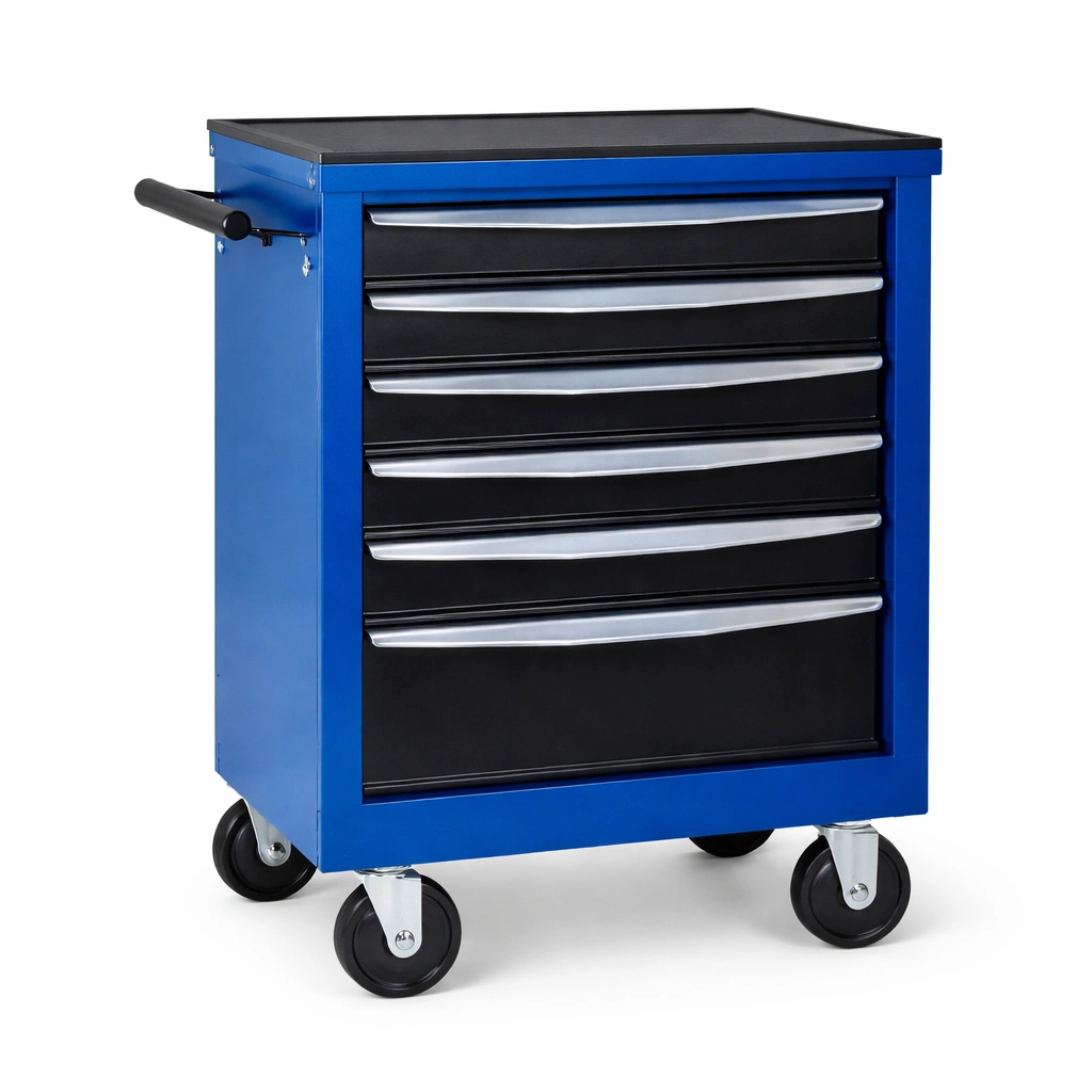 Werkzeugwagen Stahl mit 6 Schubladen Schwarz Blau