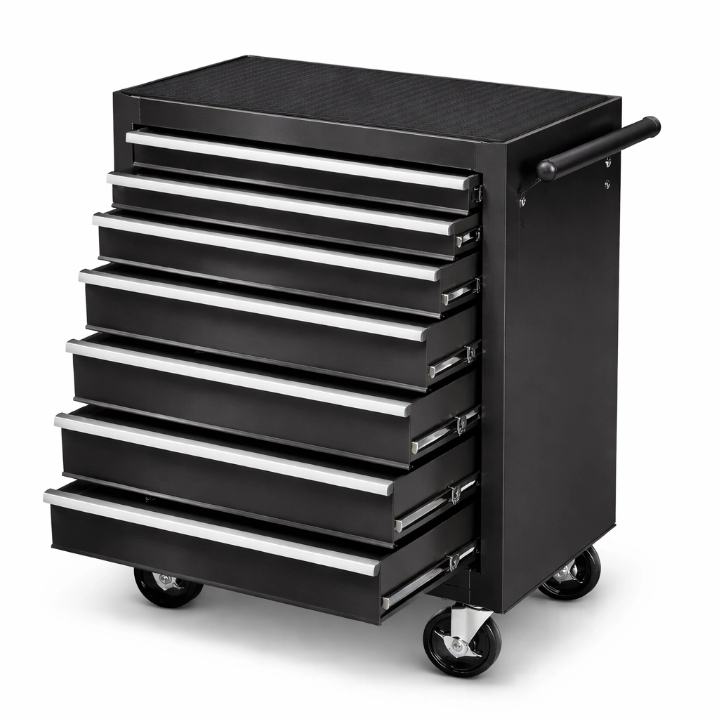 Werkzeugwagen Stahl Schwarz mit 7 Schubladen und Rollen