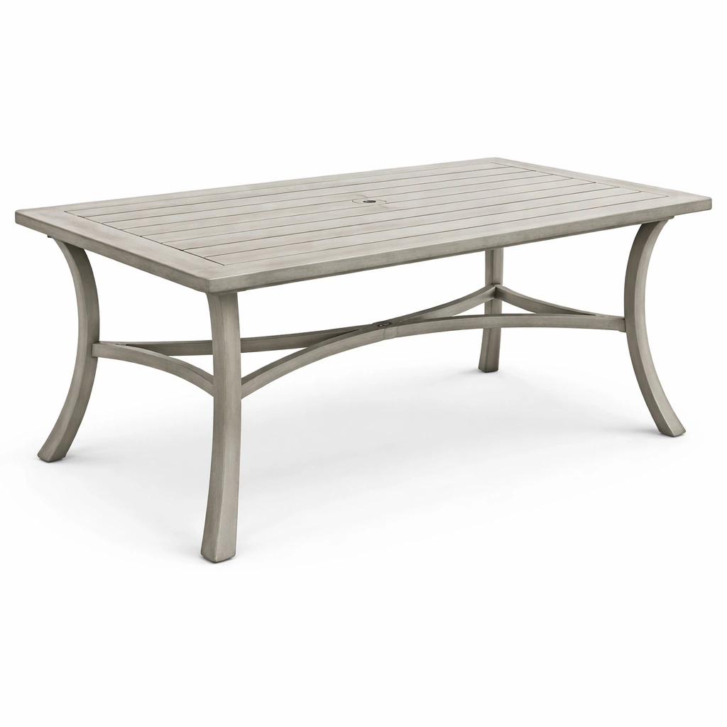 Dieser rechteckige Gartentisch besteht aus robustem Aluminium und ist in der Farbe Grau erhältlich.