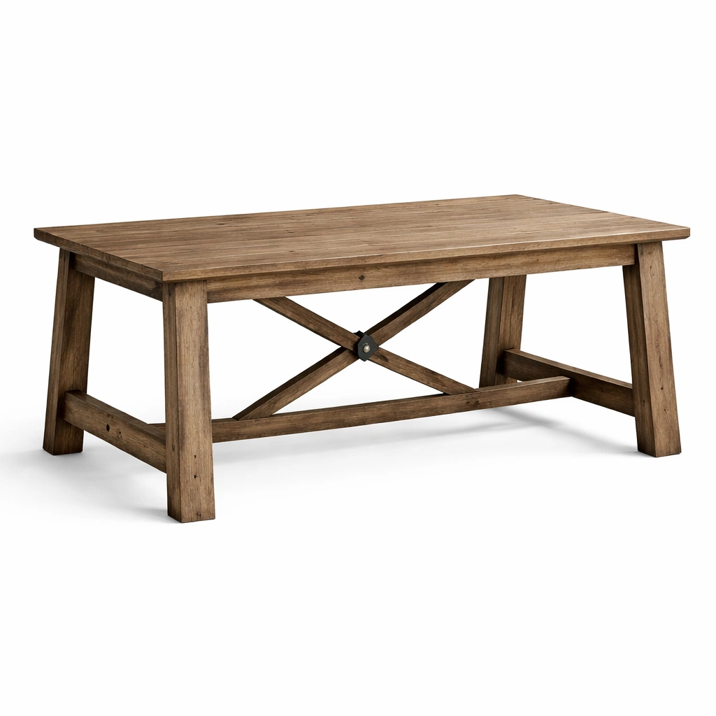 Rechteckiger Tisch aus massivem Eichenholz. Die Maße betragen 180 cm x 90 cm x 75 cm. Oberfläche in natürlichem Braunton.